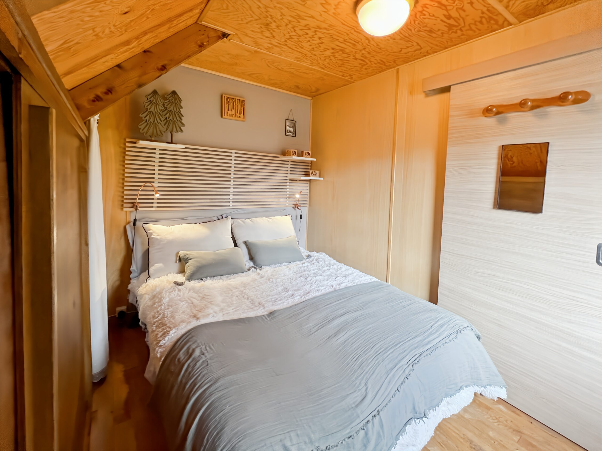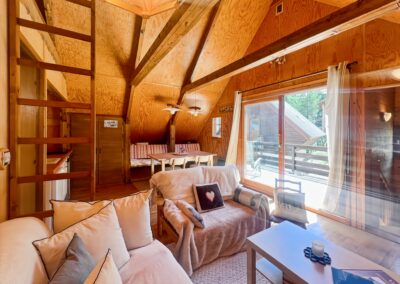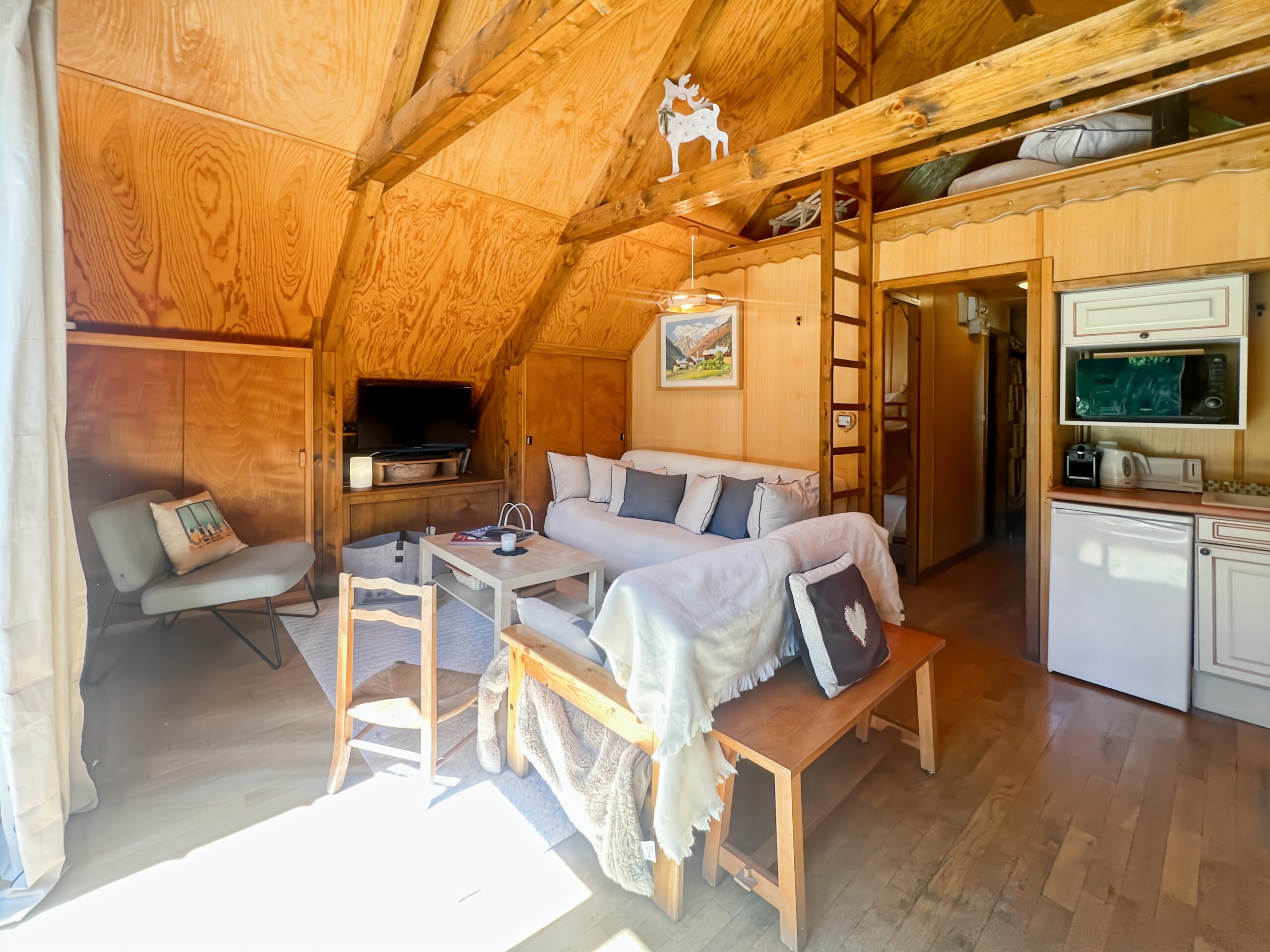 Le chalet a été pensé pour conjuguer espaces partagés conviviaux et coins nuit chaleureux et intimes. Chaque pièce a son ambiance, ses petits détails qui font toute la différence, et même ses anecdotes (que l’on partage volontiers avec nos hôtes !).