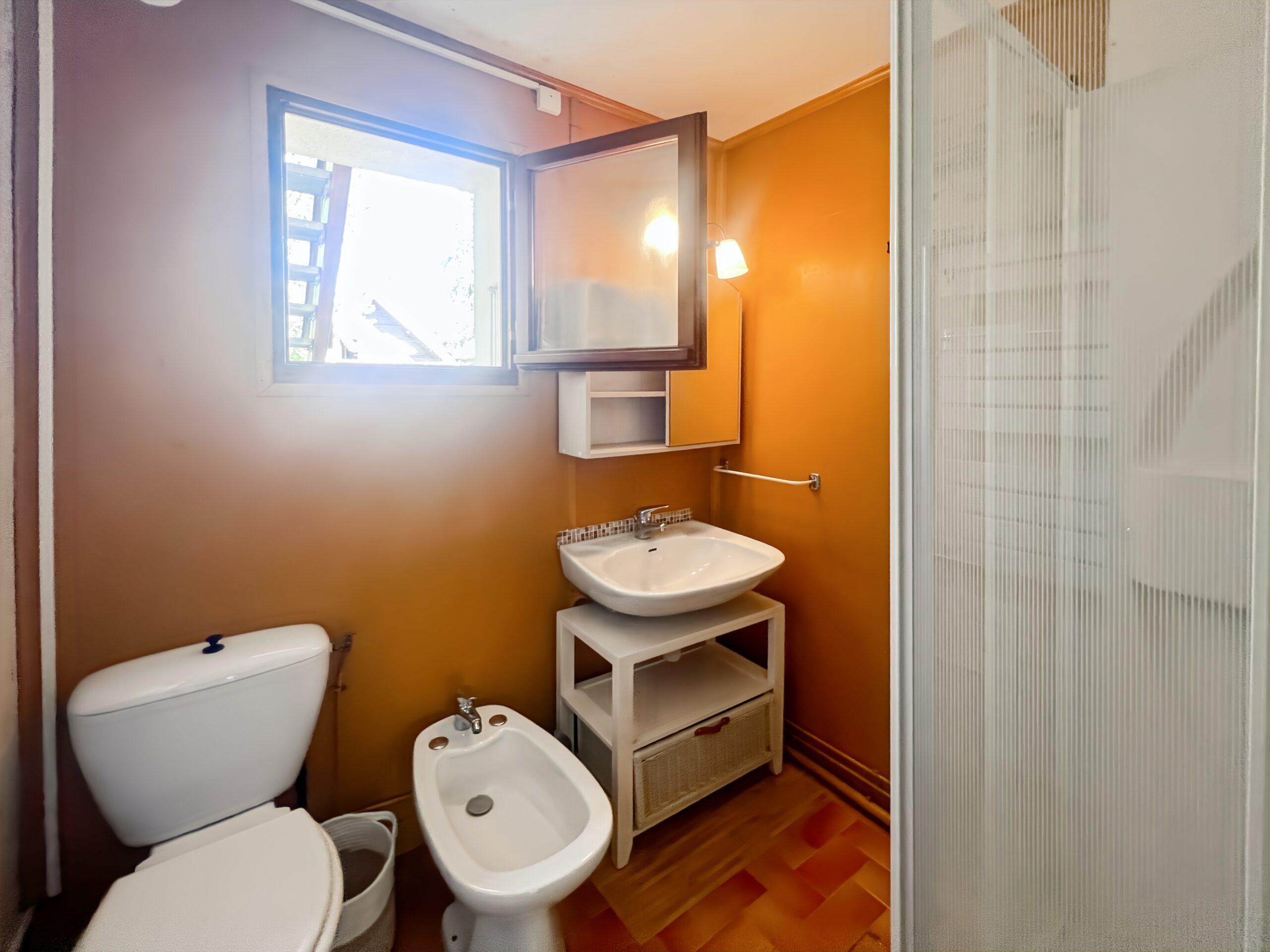 Au rez-de-chaussée la salle d’eau est attenante à la chambre refuge.