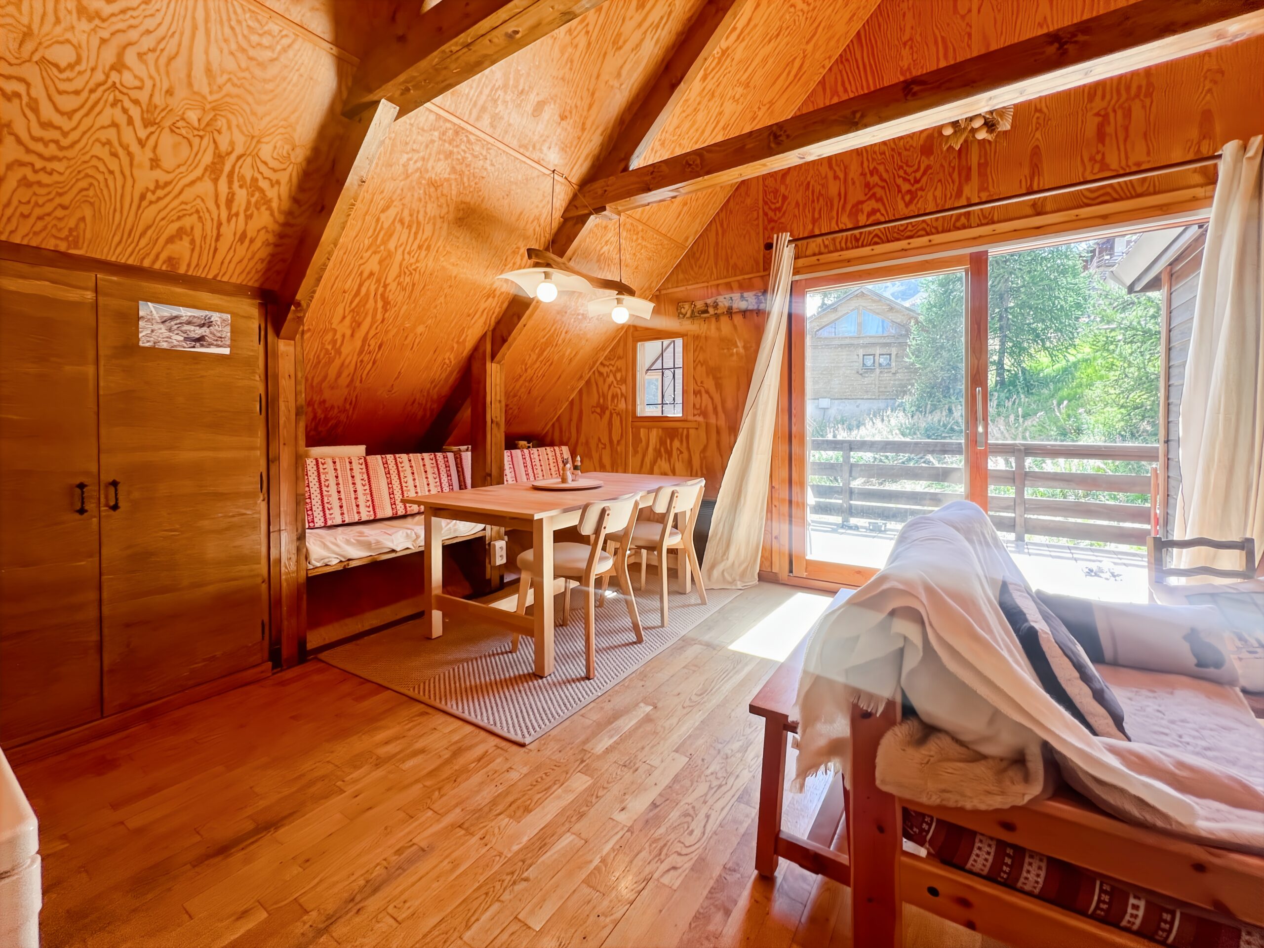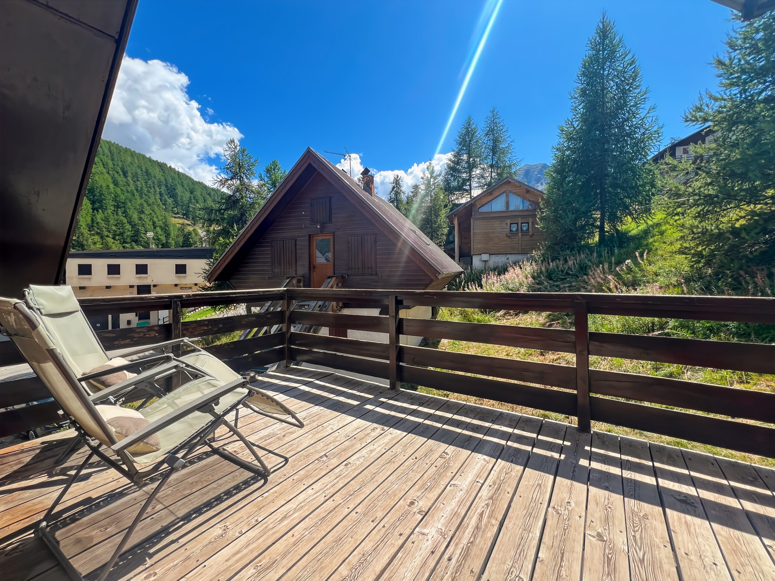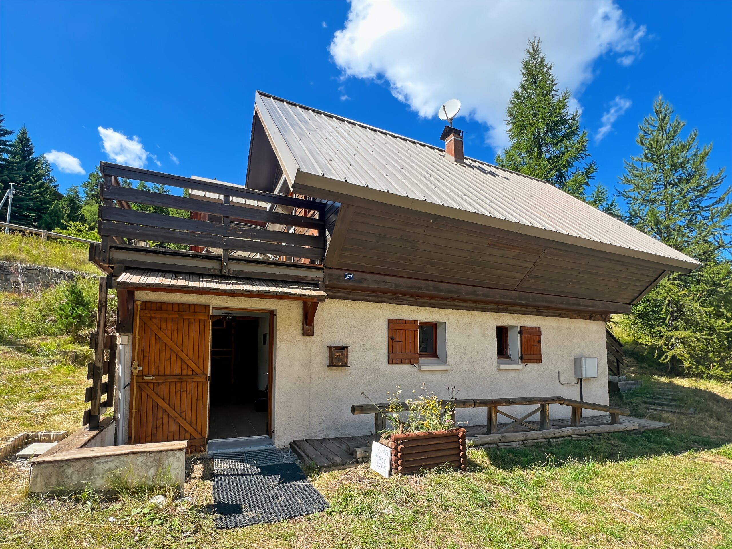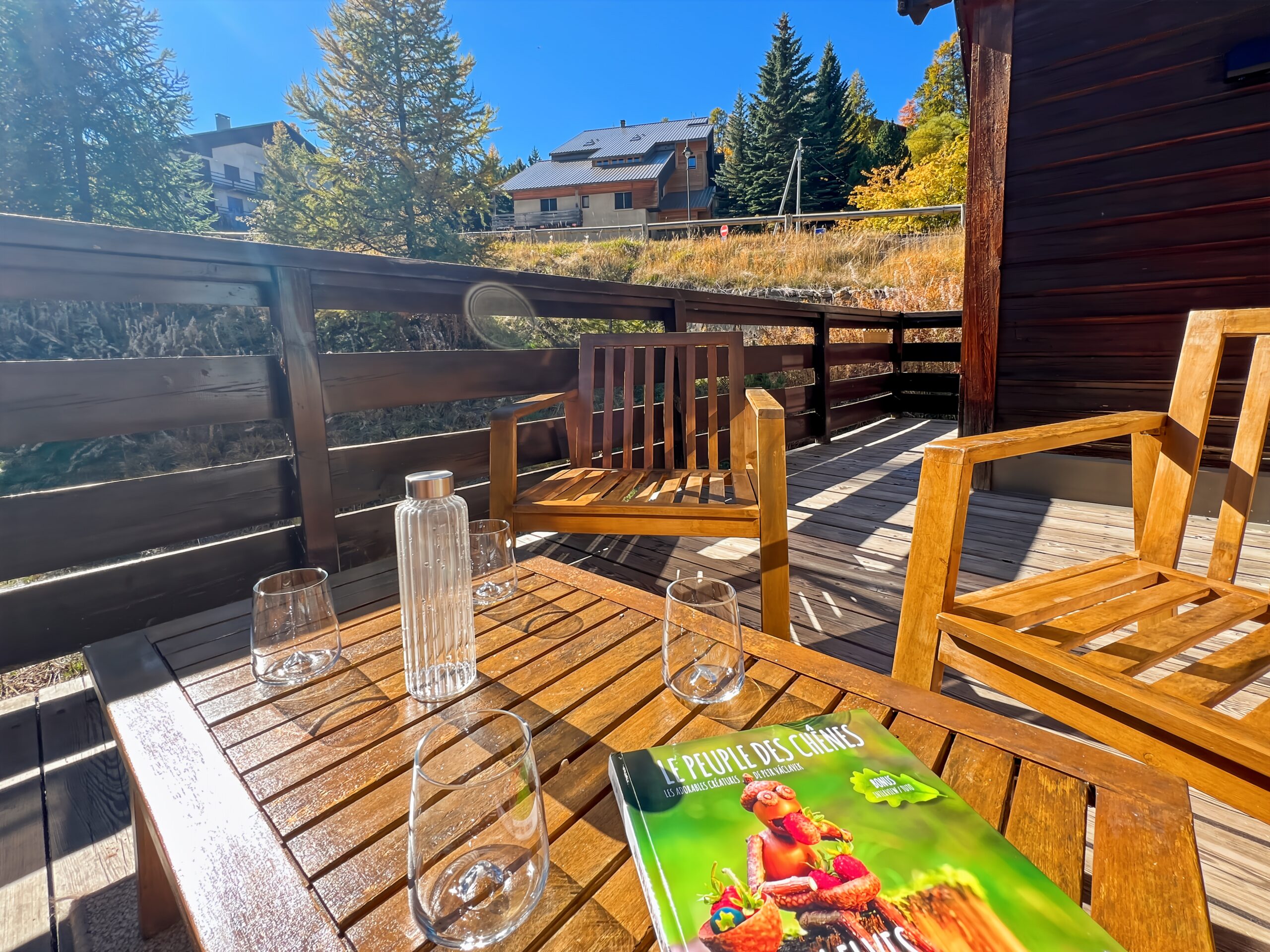 Vous apprécierez particulièrement la terrasse exposée au SUD face aux montagnes et ambiance chalet. Idéal pour les amateurs de café ou thé en terrasse.