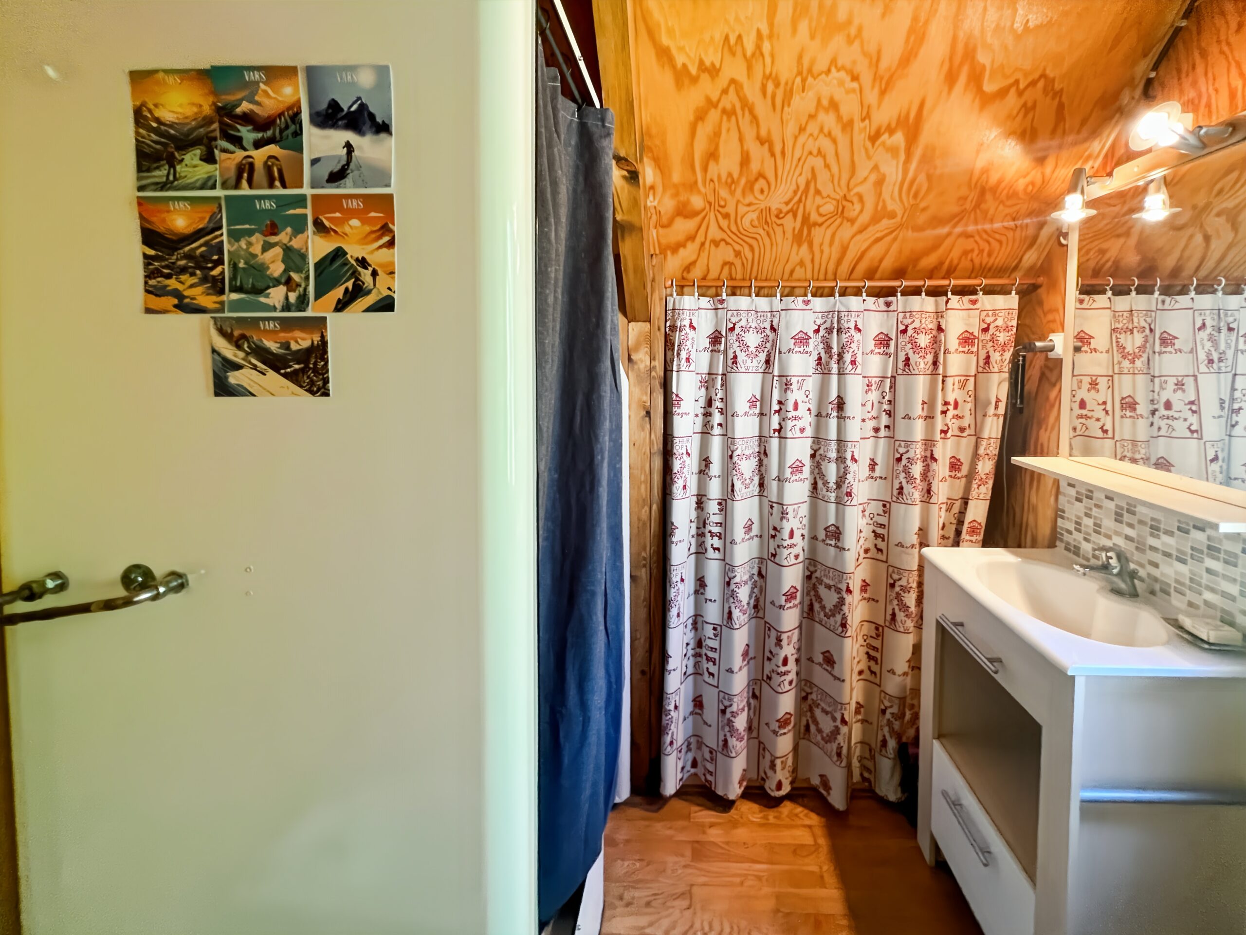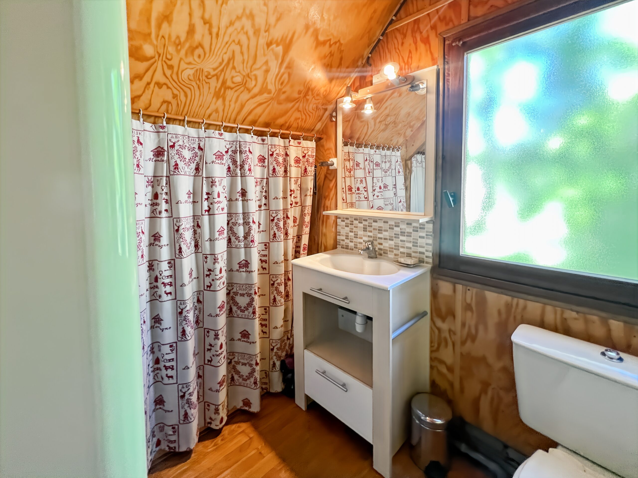 A l’étage la salle d’eau est en face de la chambre Forêt blanche.